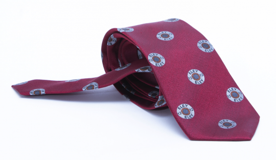 Burgundy coloured 100% Silk hand made ties featuring a patterned Eley 12g cartridge cap motif.