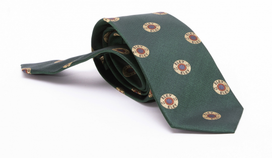 Green coloured 100% Silk hand made ties featuring a patterned Eley 12g cartridge cap motif.